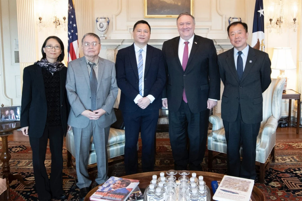 Pompeo encontrou-se com ativistas presentes no protesto de Tiananmen – Wang Dan, Su Xiaokang, Liane Lee e Henry Li – numa reunião à porta fechada na sede do Departamento de Estado, em Washington.