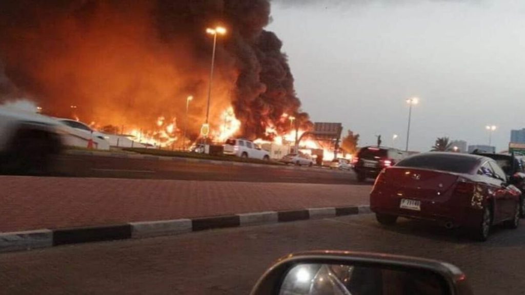 Um incêndio de grandes dimensões atingiu esta quarta-feira uma zona comercial na cidade de Ajman, nos Emirados Árabes Unidos, noticia a RT.