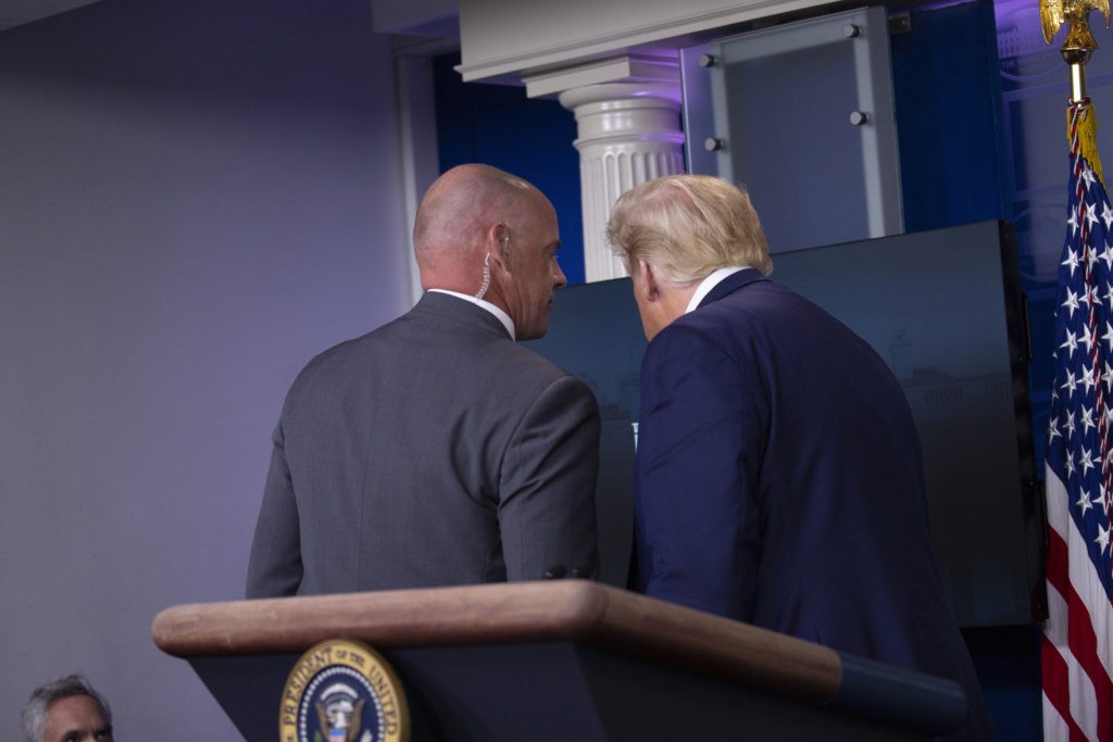 Um agente do Serviço Secreto, que tem a função de proteger o Presidente norte-americano, retirou Donald Trump repentinamente da sala na Casa Banca em que estava a começar uma conferência de imprensa.