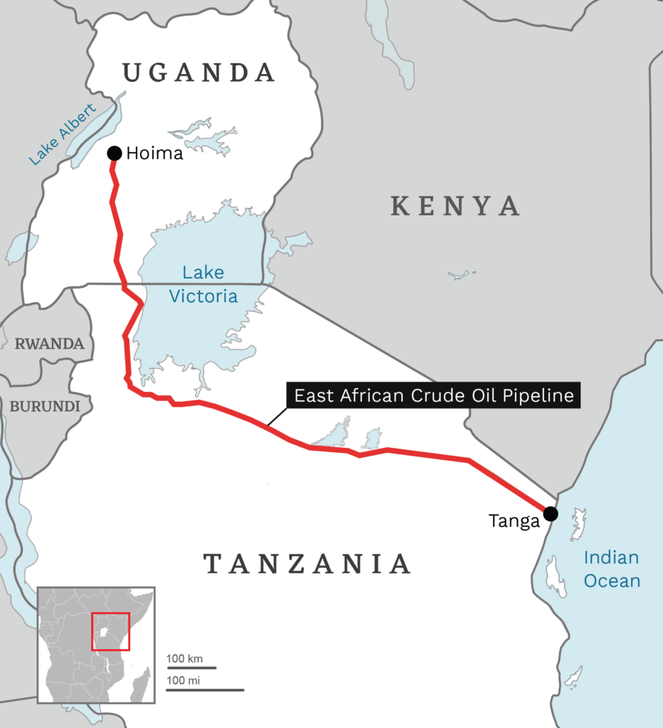 Imagine uma versão tropical do oleoduto do Alasca. E que tal a passar por habitats críticos de elefantes, leões e chimpanzés e 12 reservas florestais, contornando o lago Vitória – o maior lago de África – e cruzando mais de 200 rios e milhares de fazendas antes de chegar ao Oceano Índico – onde, se compararmos com o desastre do petroleiro Exxon Valdez em 1989 – despejaria petróleo bruto em alguns dos mangais e recifes de coral com a maior biodiversidade costeira e marinha de África. Esse projeto está pronto para construção.