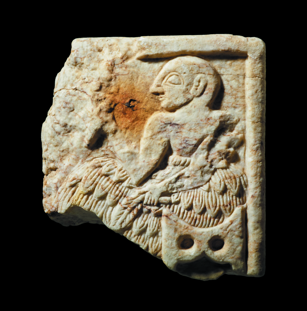 Descobriu então que a peça, esculpida em pedra calcária, e que representa uma grande figura masculina com uma saia típica suméria, provém de uma placa mural datada de 2.400 a.C.