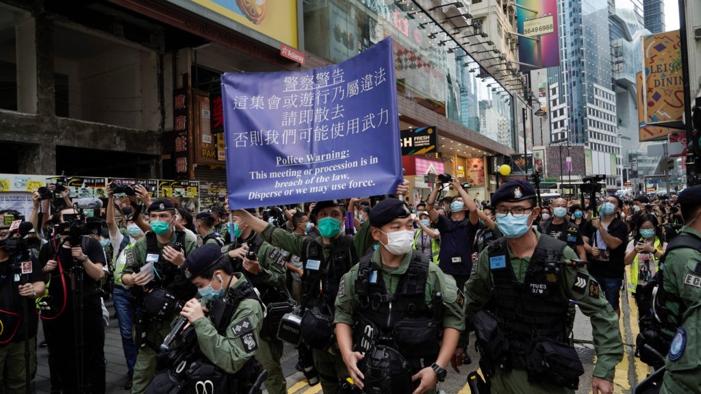 Segundo relata o jornal South Morning Post, durante todo o dia a tropa de choque patrulhou a cidade, parava e revistava os transeuntes.