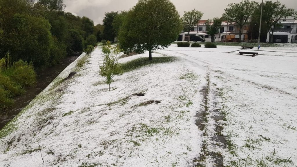 Tempestade rápida deixou tudo branco, parecendo neve; 65 casas foram danificadas