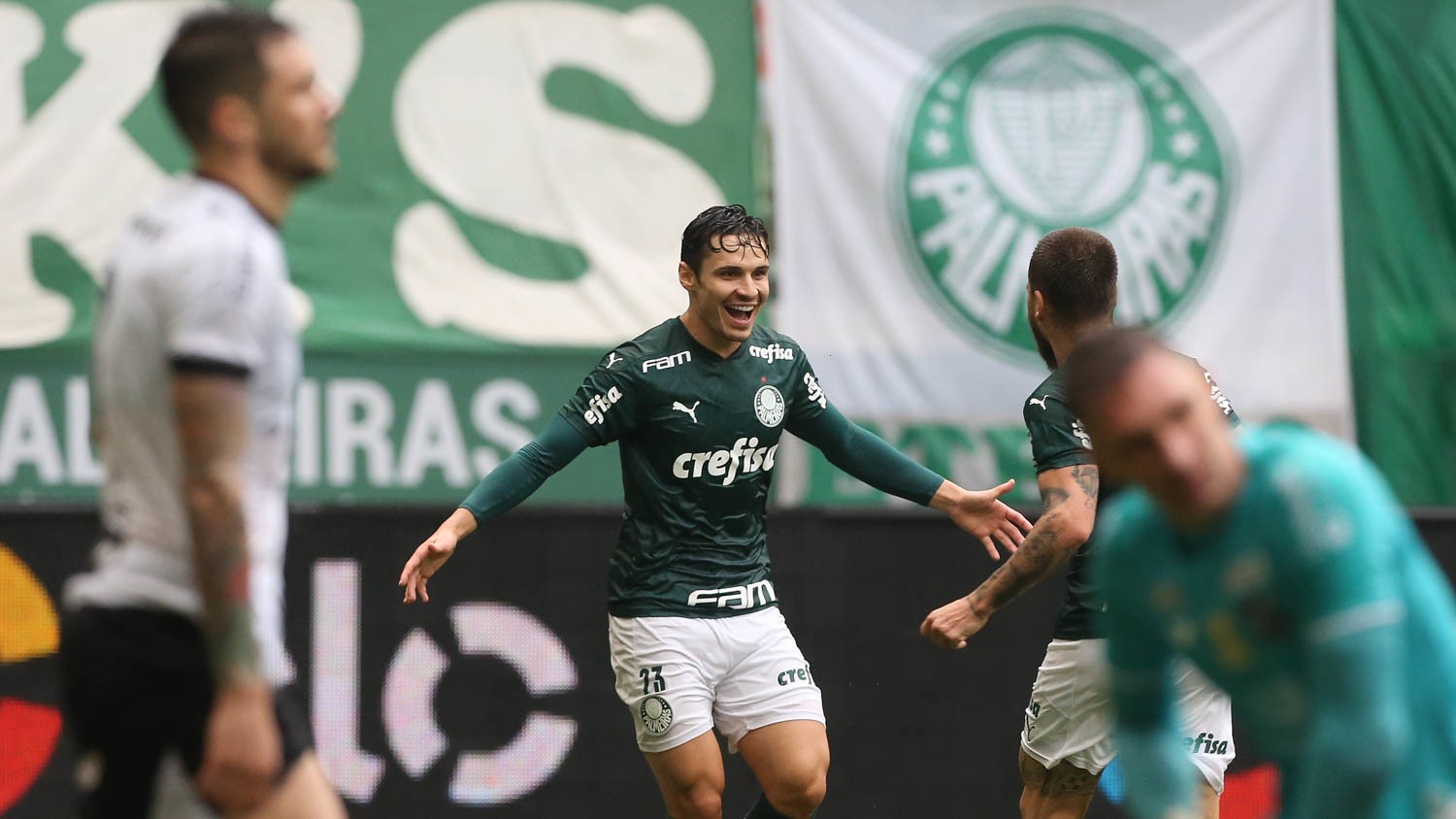 Gustavo Scarpa, Raphael Veiga e Gabriel Veron marcaram os gols que permitem ao time alviverde perder por até dois de diferença no confronto de volta, na próxima quarta (18), às 19h, em Fortaleza, e ainda assim garantir a classificação à semifinal do torneio. O clube cearense precisa de quatro gols a mais do que o paulista para ficar com a vaga –se fizer três, a decisão será nos pênaltis.