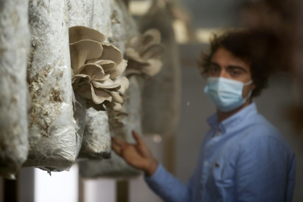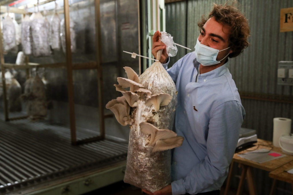 Uma “quinta” no meio de Lisboa produz diariamente 10 a 20 quilos de cogumelos, mas Natan Jacquemin quer chegar rapidamente a uma tonelada por mês, o que significará a reciclagem mensal de três toneladas de borras de café.