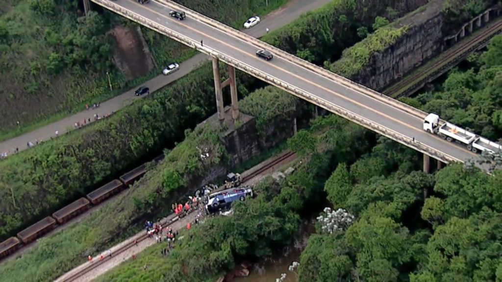 Um ônibus caiu de uma ponte de aproximadamente 15 metros de altura na BR-381, rodovia que liga Belo Horizonte, em Minas Gerais, a Vitória, no Espírito Santo. As informações são da BandNews FM.