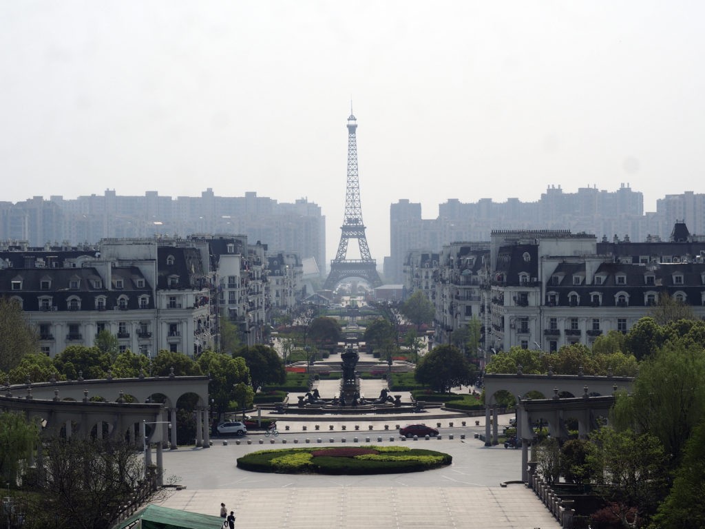 Tianducheng, na região nordeste de Hangzhou, cobre uma área de 4,6 mil quilómetros e conta com uma população de 100 mil pessoas. Uma das principais caraterísticas deste local é a arquitetura de estilo francês. Ali é possível ver-se uma réplica da parisiense Torre Eiffel, mas com um terço da dimensão da original, e o Parque Tiandu, que junta uma série de atrações europeias.