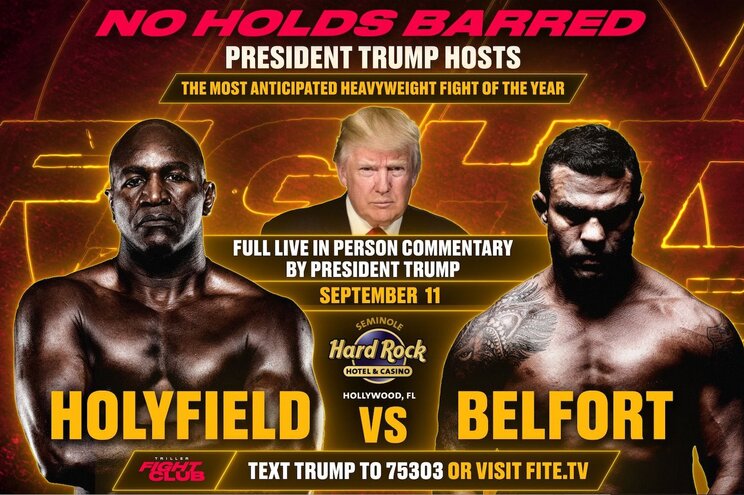 Donald Trump vai realizar os comentários alternativos em direto, no espetáculo que terá o combate entre Evander Holyfield e Vitor Belfort como atração principal. O anúncio foi feito pela FITE, empresa de streaming que vai transmitir o evento, em que Trump vai ser um dos grandes atrativos, estando inclusive no cartaz de apresentação como um dos anfitriões.