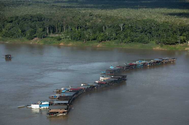 Pelo menos 300 barcos de dragagem, estavam alinhados lado a lado no rio, na semana passada, na sequência de rumores de uma nova descoberta de ouro. Mas ao mesmo tempo que as imagens da corrida ao ouro se espalhavam, as autoridades preparavam a operação para impedir que surgissem explorações mineiras ilegais.