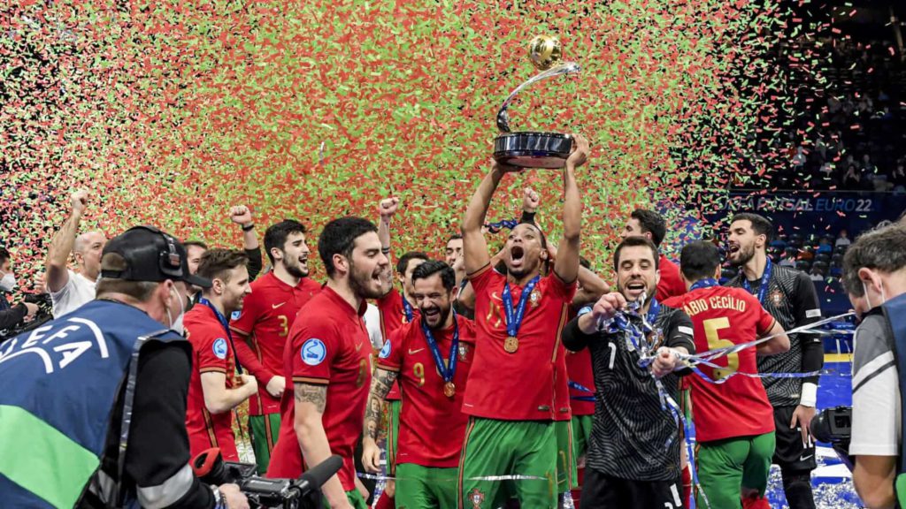 A seleção portuguesa de futsal revalidou ontem o título europeu, ao vencer a Rússia por 4-2 na final do campeonato da Europa de 2022, em Amesterdão, juntando-o ao cetro mundial