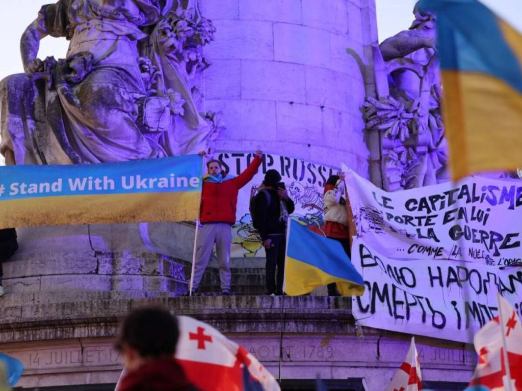 Em Paris, centenas de pessoas se reuniram em frente à embaixada russa, entre elas candidatos nas eleições presidenciais de abril.