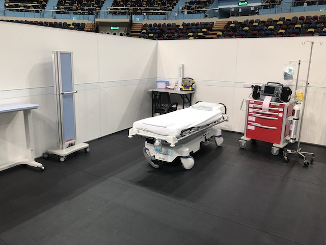 O hospital de campanha na Nave Desportiva dos Jogos da Ásia Oriental será capaz de albergar mais de quatro mil camas. Lei Wai Seng, diretor dos Serviços de Urgência do Centro Hospitalar Conde de São Januário, referiu ainda que só serão recebidos neste complexo pacientes sem grandes necessidades médicas. O médico revelou também que as crianças infetadas podem ser acompanhadas pelos pais quando forem para isolamento e que o plano das autoridades está muito próximo da perfeição
