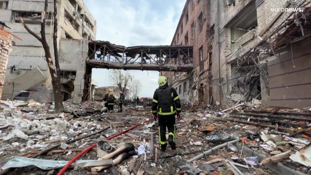 Desta vez, um dos mísseis provocou um incêndio em vários edifícios do centro e destruiu uma cozinha que fornecia refeições gratuitas aos moradores desta cidade do nordeste da Ucrânia, perto da fronteira com a Rússia.