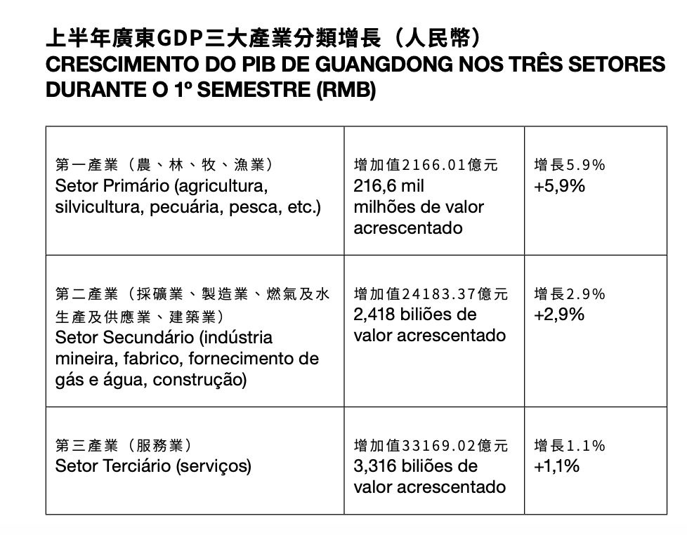É importante notar que embora vários indicadores de Guangdong tenham demonstrado recuperação após ser reiniciada a atividade laboral, a taxa de crescimento da província continua abaixo do nível nacional. De acordo com o Gabinete de Estatísticas de Guangdong, os principais indicadores económicos do segundo trimestre deste ano demonstraram crescimento, mas a economia continua a sofrer pressão em três frentes: diminuição da procura, choque de oferta e previsões fracas. Peng Peng acredita que o crescimento de Guangdong em indústrias emergentes significa que a estrutura económica da província foi transformada. “Um investimento duplicado sem eficiência de mercado poderá impactar o PIB.”