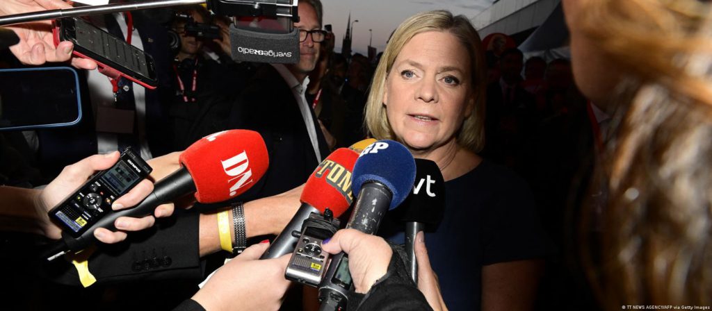 De sua parte, Andersson, uma ex-ministra das Finanças de 55 anos, fez campanha com a proposta de formar um governo com os pequenos partidos de Esquerda, Centro e os Verdes.