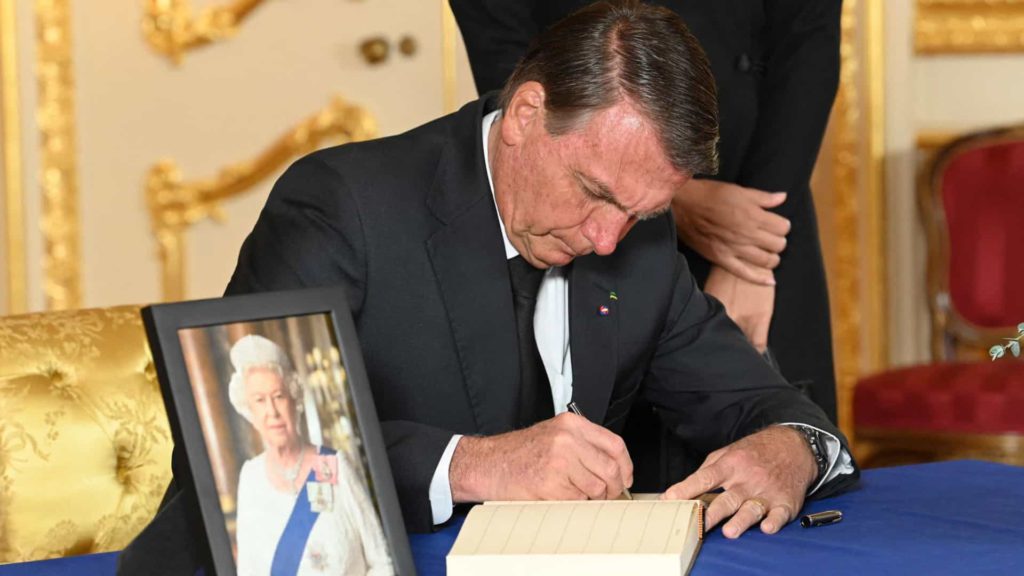 Bolsonaro está em Londres, naquela que é a sua primeira visita de Estado ao Reino Unido, para assistir às cerimónias fúnebres da rainha Isabel II, uma viagem de quatro dias que, segundo refere a AP, é vista pelos seus apoiantes como uma oportunidade para influenciar alguns eleitores e contrariar a imagem de que o líder brasileiro está isolado em relação a outros líderes mundiais.