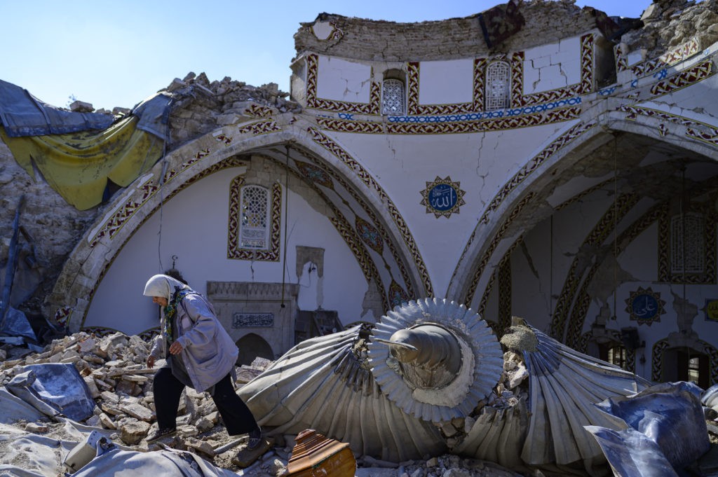 O pináculo da cúpula de Habib-i Neccar, a mesquita mais antiga da Turquia, está caído no chão, sobre os destroços que cobrem o salão de oração.