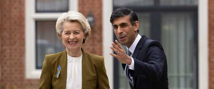A líder europeia foi recebida hoje por Sunak para tentar fechar um acordo sobre o controverso Protocolo da Irlanda do Norte, parte do Acordo de Saída do Reino Unido da União Europeia (UE).