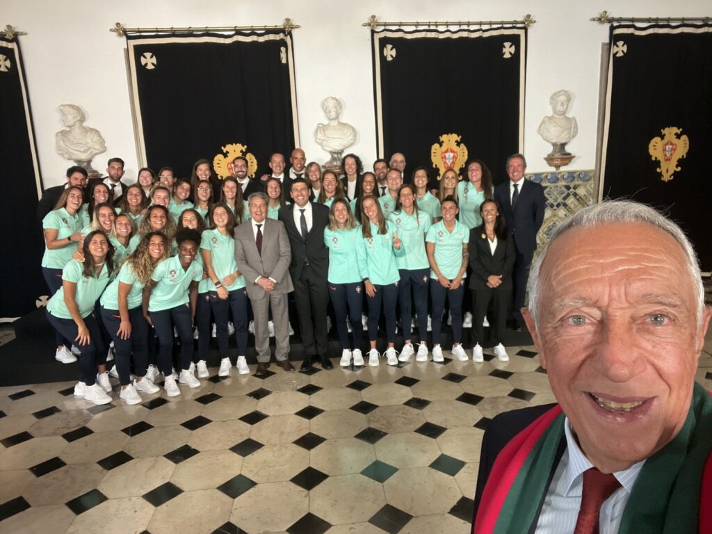 A seleção feminina foi esta segunda-feira recebida por Marcelo Rebelo de Sousa no Palácio de Belém antes da viagem para a Nova Zelândia, onde participará no Campeonato do Mundo de futebol feminino. O presidente da República quis estar ligado à estreia de Portugal e deu-lhes honras de Estado por três motivos. Primeiro porque não pode estar presente no último jogo de preparação – sexta-feira, no Bessa, com a Ucrânia – devido ao desmaio da semana passada que o levou a cancelar alguns compromissos da agenda presidencial. Marcelo ficou com pena de ter perdido um “show de bola” e não ter contribuído para o recorde de assistência de um jogo da equipa das quinas (20 123 espetadores). Segundo ele, o mais importante nem foi o triunfo (2-0, com golos de Jéssica Silva), mas ver que elas “lutaram em cada jogada e cada lance como se fosse o último da vida”. E é essa forma de viver a vida que ele considera “fundamental” transpor para a fase final.