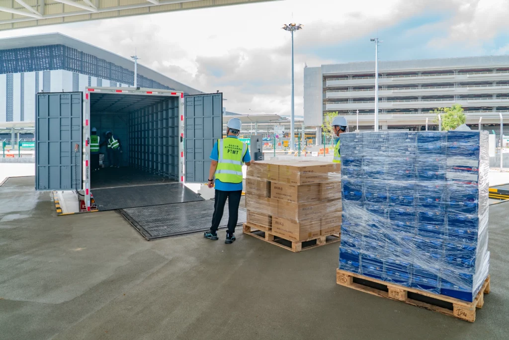 De acordo com um anúncio feito pelo governo de Hong Kong, uma instalação de transferência logística está agora operacional, servindo como um elo crucial que permite que veículos de Hong Kong transportem mercadorias para Macau.