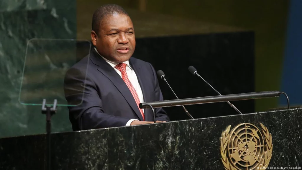 O chefe de Estado moçambicano centrou o seu discurso em temas como paz e segurança, combate ao terrorismo, mudanças climática, transição energética, economia azul e conservação ambiental.