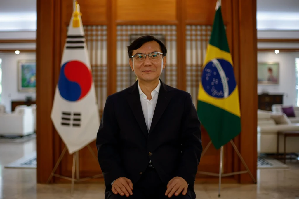 Lim Ki-mo queria se preparar para responder em português, idioma que pratica há três anos, desde que se mudou para o Brasil. Ele é o representante oficial da Coreia do Sul no país e ainda não se sente plenamente confortável para conversar na língua —algo que ninguém diria ao vê-lo entoando versos de clássicos do samba e da MPB.
