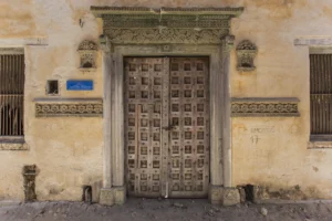 Com portões de madeira trabalhada em Goa, que foram reabilitados há vários anos, a Casa de Camões, está atualmente com uma parte do interior em ruínas