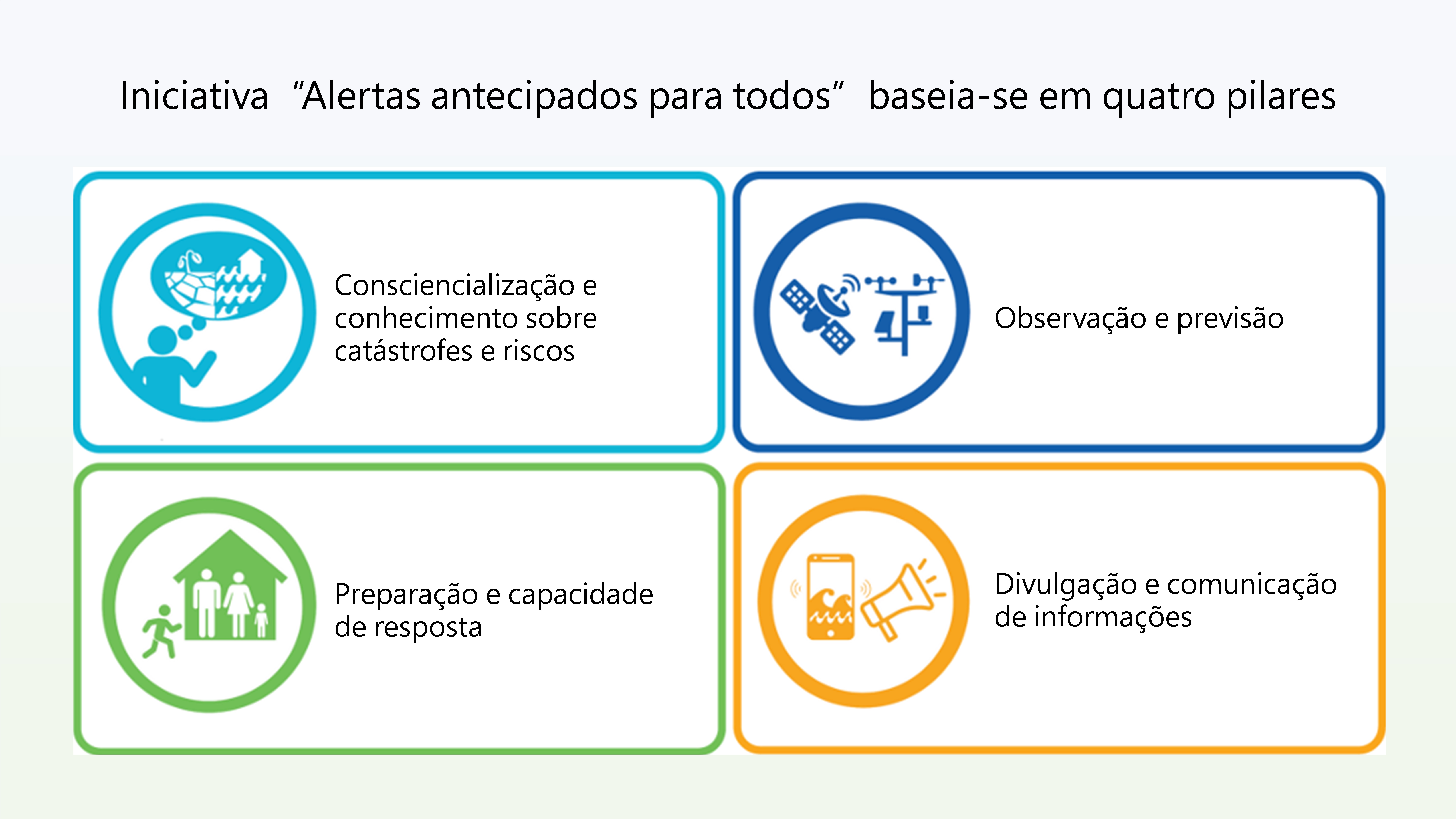 Figura 3. Iniciativa“Alertas antecipados para todos” baseia-se em quatro pilares (Fonte: Organização Meteorológica Mundial)