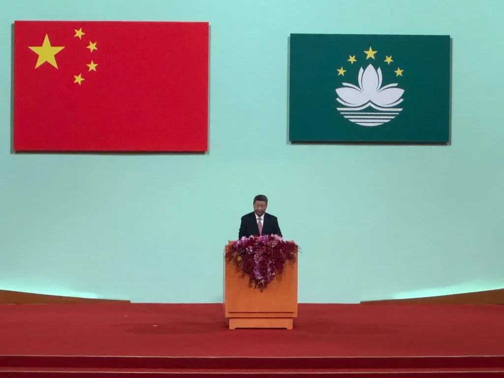 Xi Jinping falava após a tomada de posse do novo chefe do Executivo do território, Sam Hou Fai, no dia em que se comemora o 25.º aniversário do estabelecimento da Região Administrativa Especial de Macau (RAEM).