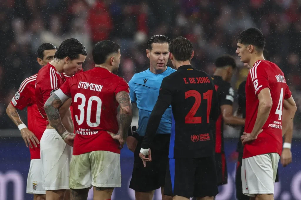 O Benfica-Barcelona terminou com muita contestação da equipa portuguesa, depois do golo de Raphinha no último lance do jogo. As águias reclamam uma grande penalidade que precedeu o golo espanhol, mas o árbitro da partida, Danny Makkelie, nada assinalou. Marco Ferreira, ex-árbitro, considera que foi um erro “claro e óbvio” da equipa de arbitragem.