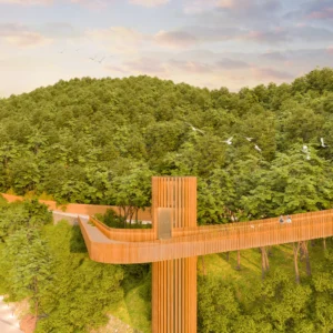 Desenhado para ser inclusivo, o projeto assegura acessibilidade total, incluindo para pessoas com mobilidade reduzida. “Não terão de percorrer todo o percurso e voltar para trás”, diz. A solução proposta passa por um passadiço contínuo em madeira e um elevador, permitindo que todos possam desfrutar do trilho ao seu ritmo.
