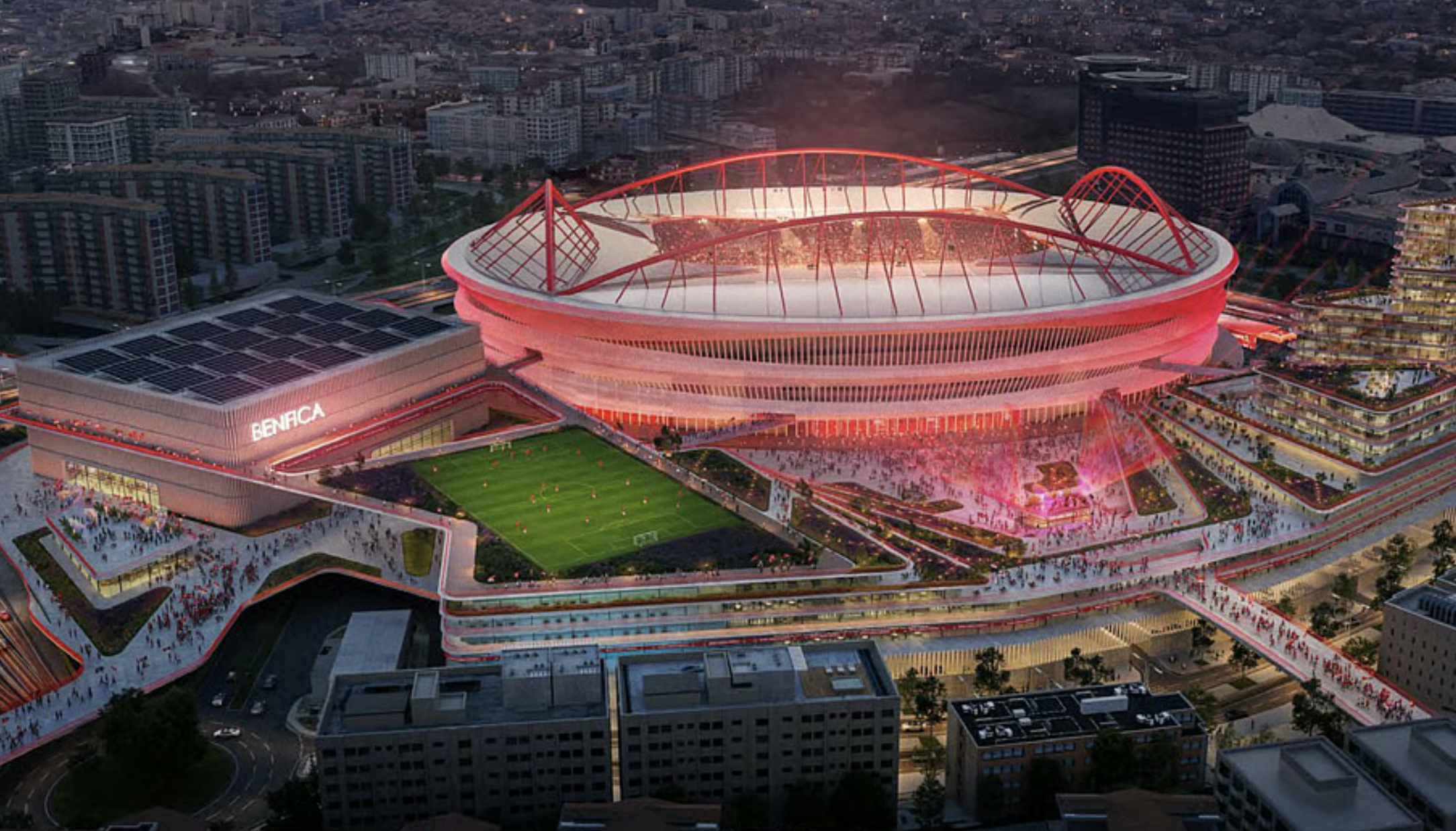 Será a maior obra de renovação do Estádio da Luz e das áreas que o rodeiam desde que a estrutura foi inaugurada, em 2004. O projeto “Benfica District”, que será apresentado hoje pelo presidente do clube, Rui Costa, envolve uma renovação do estádio, a construção de um pavilhão multiusos com capacidade para 10.000 pessoas, dois pavilhões desportivos (de 2.500 e de 1.500 pessoas), uma piscina comunitária, áreas residenciais, comerciais e acessos pedonais e viários. Tudo para estar pronto até 2030, de acordo com o cronograma do projeto que o DN consultou, a tempo do Campeonato do Mundo FIFA, que se disputará em Marrocos, Espanha e Portugal.