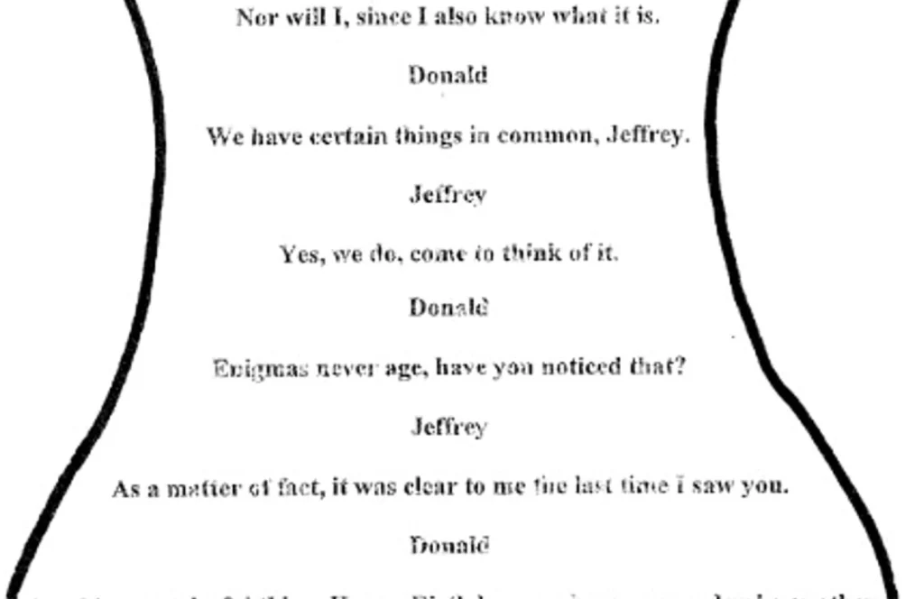 A carta de aniversário contém o texto de um alegado diálogo entre Trump e Epstein, em que o atual presidente o trata por “amigo” e diz: “Que cada dia seja outro segredo maravilhoso”. O texto está escrito dentro do esboço da silhueta de uma mulher nua e é assinado, no final, por “Donald” na característica letra do presidente.