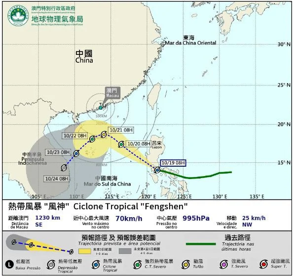 Fengshen vai entrar no raio de 800 Km de Macau entre a noite deste domingo e às primeiras horas de segunda-feira.