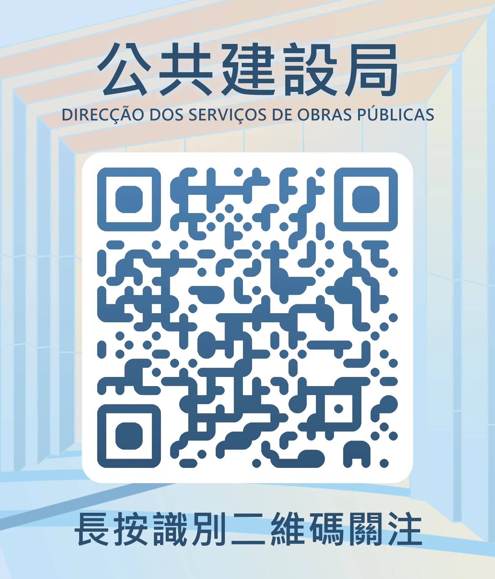 Os utilizadores podem pesquisar no WeChat “澳門公共建設局DSOP” ou digitalizar o código QR para seguir a conta oficial e receber atualizações em tempo real. Além das notícias, a conta oferece um menu interativo, que dá acesso direto a comunicados de imprensa, alterações de trânsito, informações sobre obras publicadas no portal eletrónico da DSOP e uma página de contacto para pedidos de informação ou apresentação de sugestões sobre obras públicas.