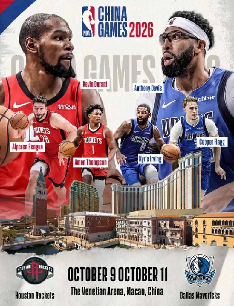 Os Dallas Mavericks medem forças com os Houston Rockets, em jogos de pré-temporada, nos dias 9 e 11 de outubro. O anúncio conjunto foi feito pela NBA e a Sands, que organiza as partidas.