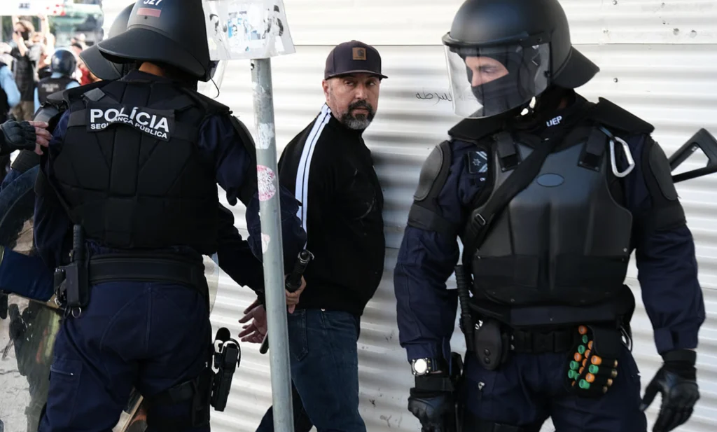 Mário Machado detido pelo corpo de intervenção da PSP durante os distúrbios ocorridos no 25 de abril, de 2025