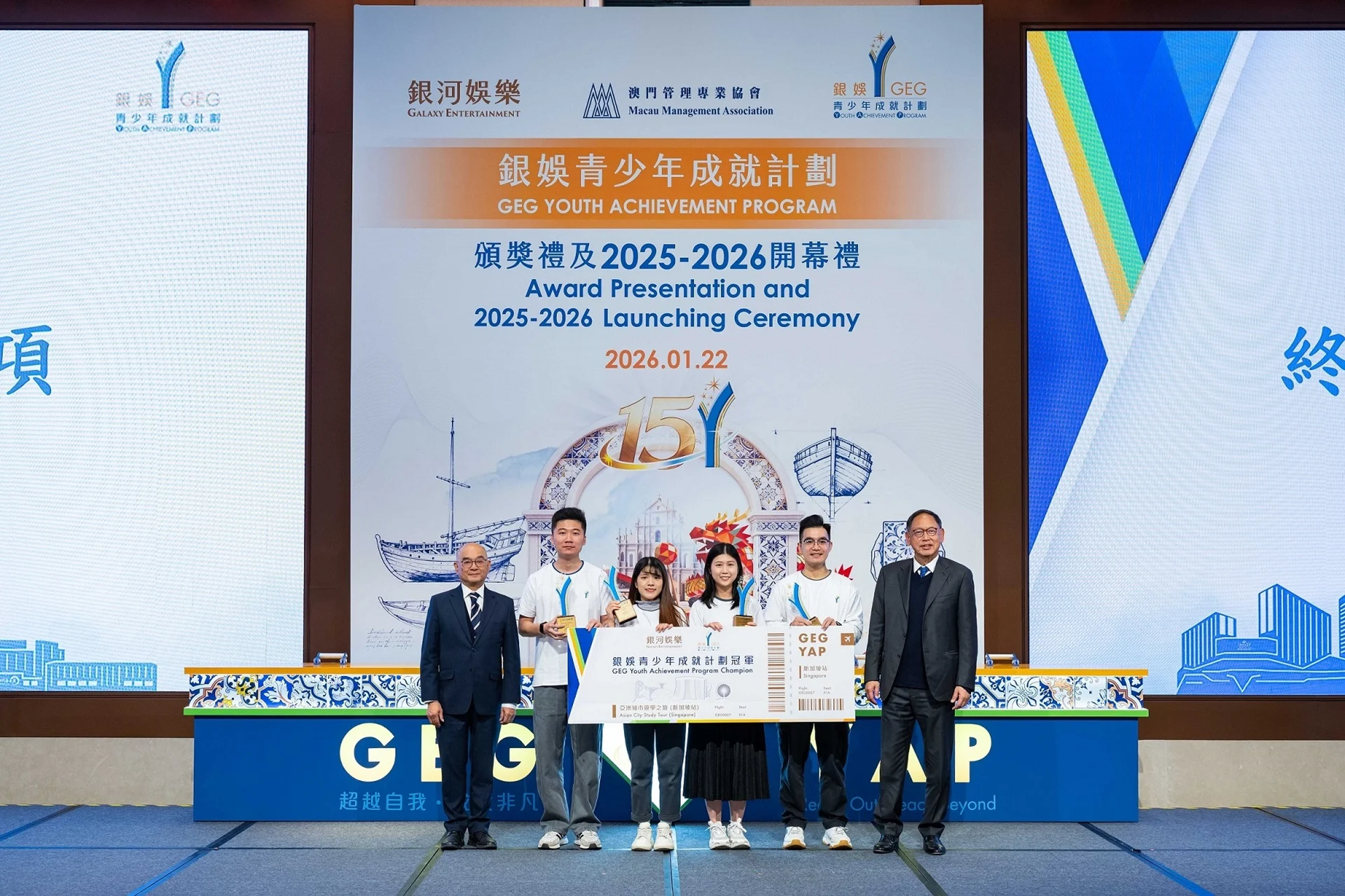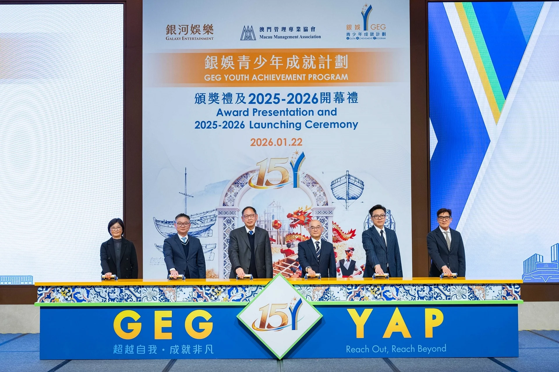 O Galaxy Entertainment Group (GEG) e a Associação de Gestão de Macau (MMA) assinalaram a 15.ª edição do Programa de Realização Juvenil da GEG (YAP) com a cerimónia de entrega de prémios da 14.ª edição e a cerimónia de lançamento da nova edição, realizadas no Centro Internacional de Convenções da Galaxy.