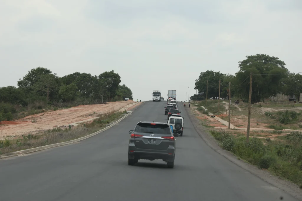 O Chefe de Estado constatou de perto o andamento das obras de alargamento e reabilitação de dois troços nas duas Estradas Nacionais que cruzam aquela circunscrição.