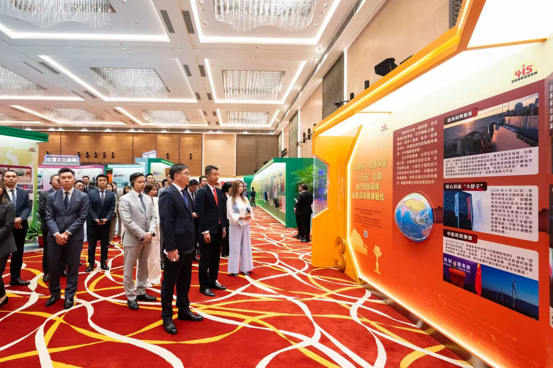 A exposição apresenta igualmente a colaboração do Governo da RAEM com diferentes setores da sociedade na promoção da educação sobre segurança nacional e na salvaguarda da segurança nacional.