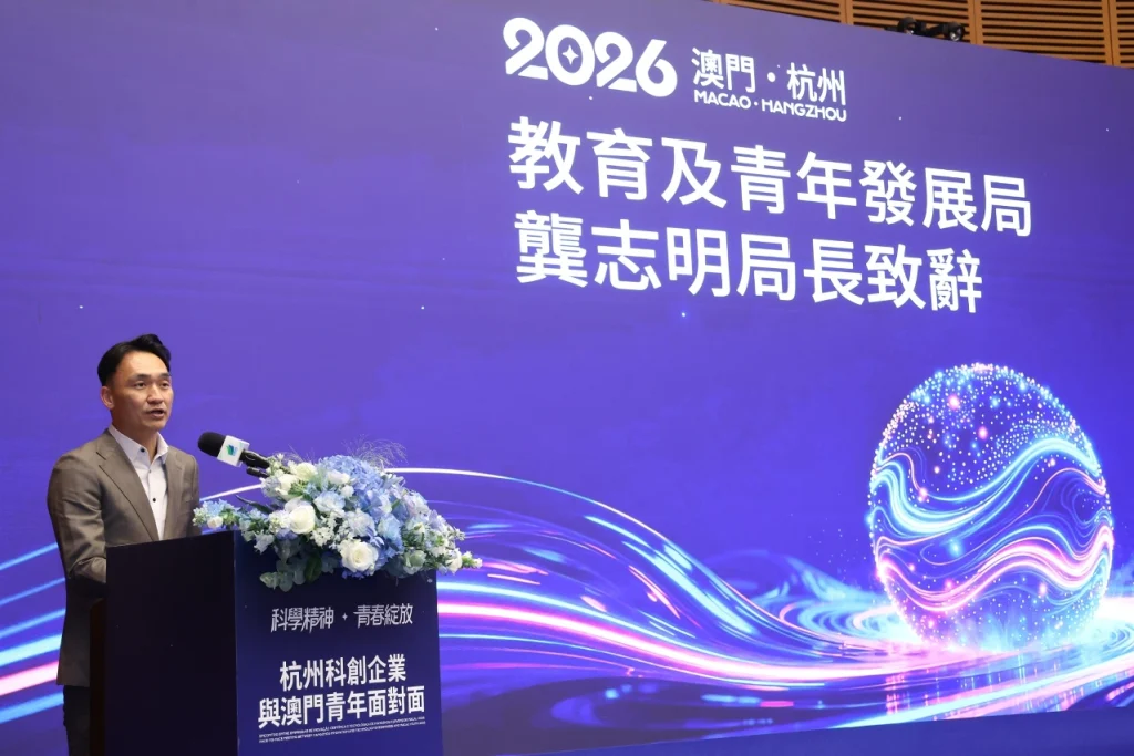 Sob a orientação do Departamento de Educação e Assuntos de Juventude do Gabinete de Ligação do Governo Popular Central na Região Administrativa Especial de Macau (RAEM), realizou-se no dia 27 de abril o evento “Espírito Científico e Brilho da Juventude – Encontro entre Empresas de Inovação Científica e Tecnológica de Hangzhou e Jovens de Macau 2026”.