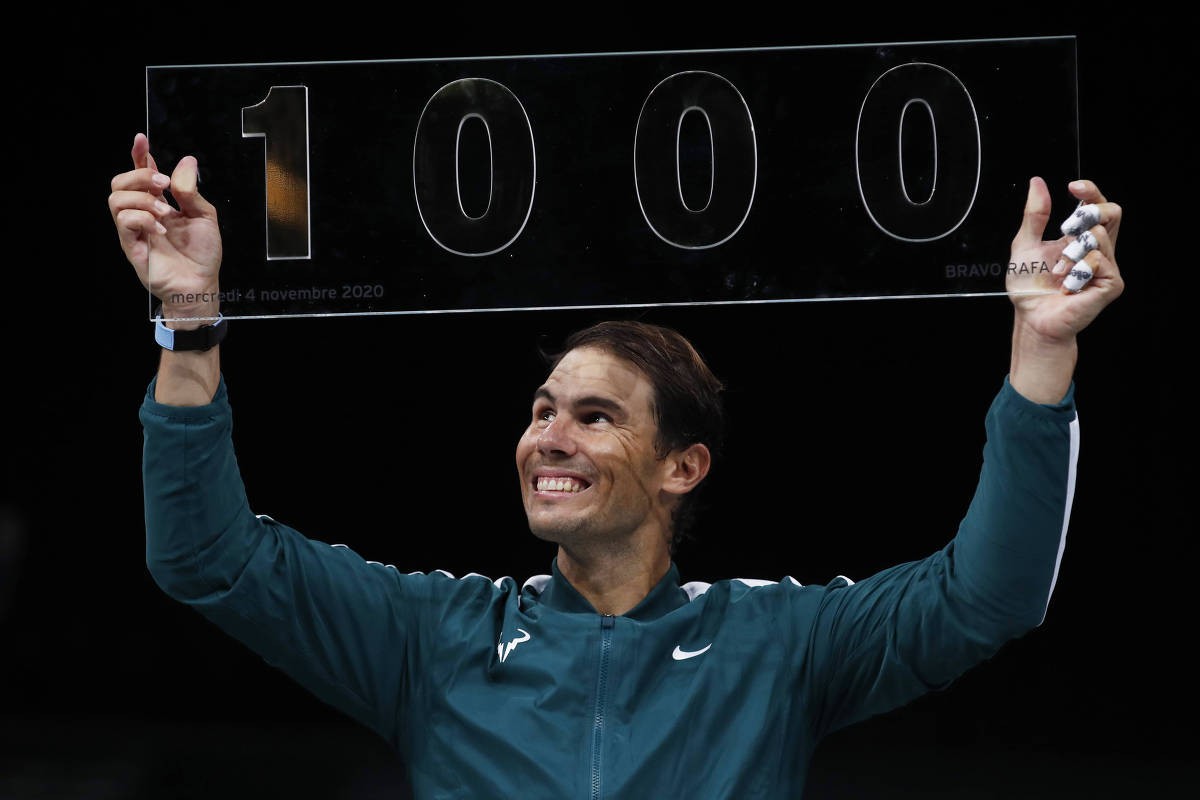 Spanish tennis player Rafael Nadal reached the thousandth victory in a single of his professional career this Wednesday (4), when he beat fellow countryman Feliciano López for the second round of the Masters 1,000 in Paris.