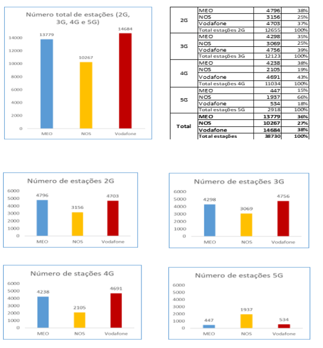 In the set of mobile and fixed networks available in the country, Vodafone has the most stations installed: 14,684, which corresponds to 38 percent of a total of 38,730 stations; followed by Altice, with 13,779 network stations, or 36 percent of the total number of existing antennas.