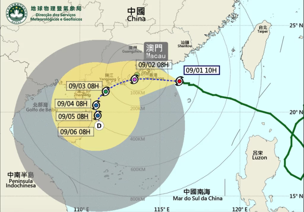 Super Typhoon Saola” is currently around 270 km east of Macau and the wind is expected to intensify. Local Meteorology estimates that the need to raise signal number 9 next morning is “relatively high” and signal 10 – the maximum – “moderate.”