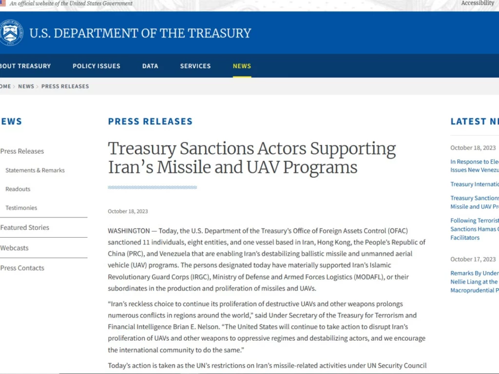 The latest round of Treasury sanctions targeted businesses like Iran-based Fanavaran Sanat Ertebatat Company, which makes jam-resistant guidance systems, its directors, as well as Saberin Kish Company for supporting Iran’s Islamic Revolutionary Guard Corps.