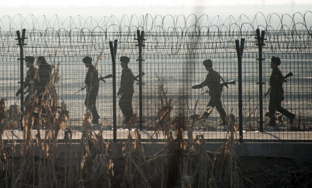 One photo released by South Korea‘s military shows four North Korean soldiers rebuilding a wooden guard post in the Demilitarized Zone that separates the two countries.