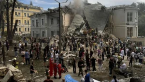 Kyiv said the children’s hospital had been struck by a Russian cruise missile with components produced in NATO member countries and announced a day of mourning in the capital.