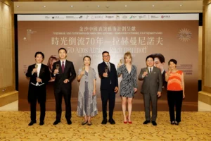 Guests participate in a toasting ceremony before the July 6 performance of the “70 Years Back in Time – Rachmaninoff” concert at The Venetian Theatre.