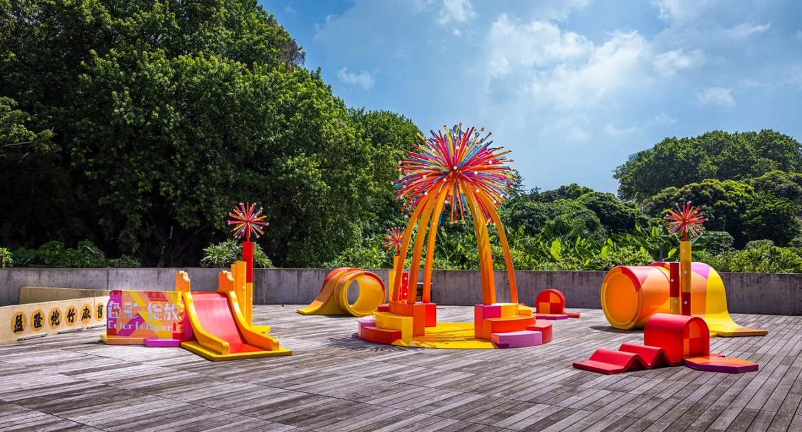 Resembling a playground, Colorful Spark was inspired by the form of firecrackers and the vivid colours of fireworks, designed to be a space for both children and adults to enjoy and take photos.
