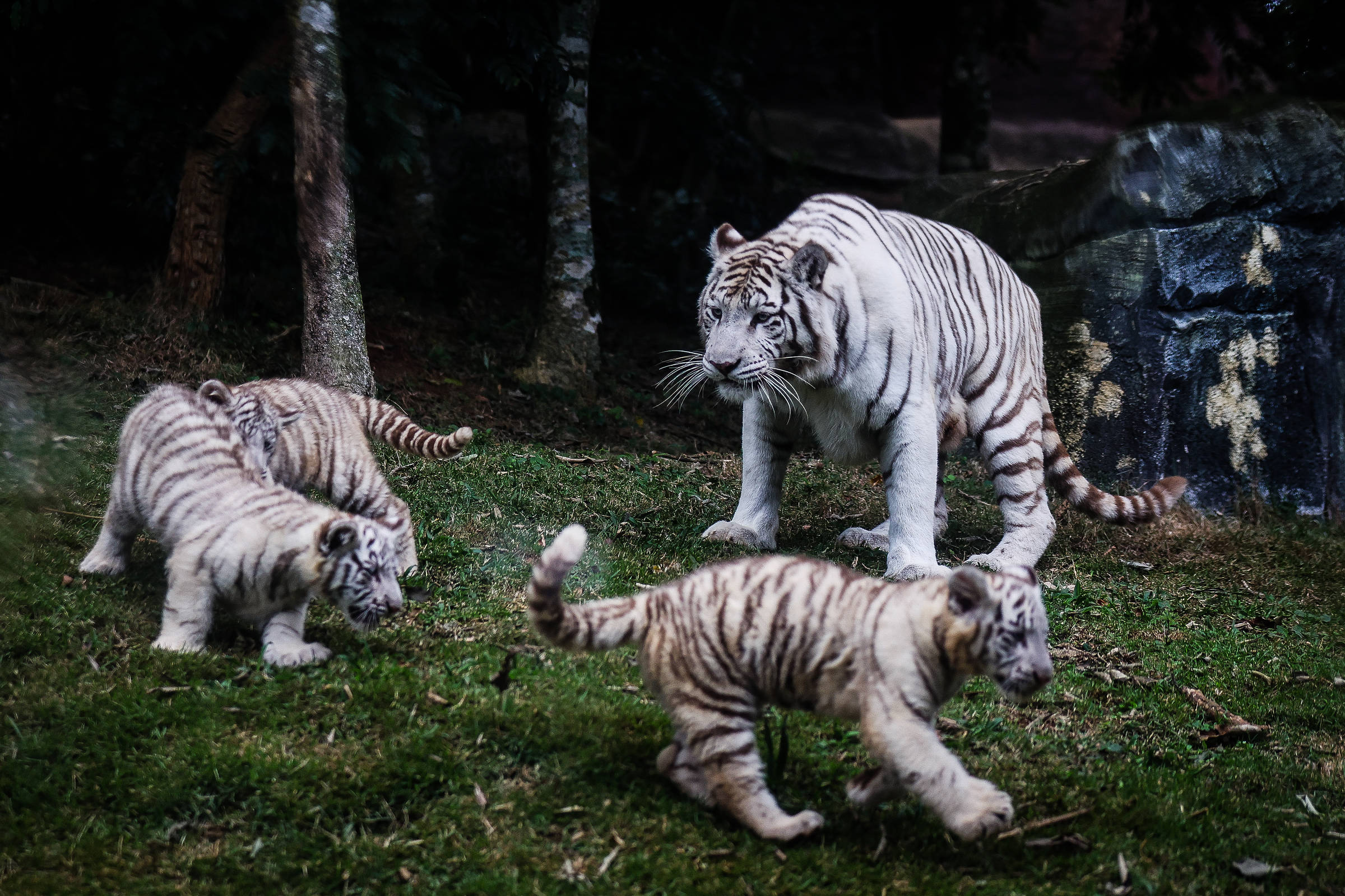 Three white tigers, a rarity in the animal kingdom, were born in Cotia, in the metropolitan region of São Paulo.